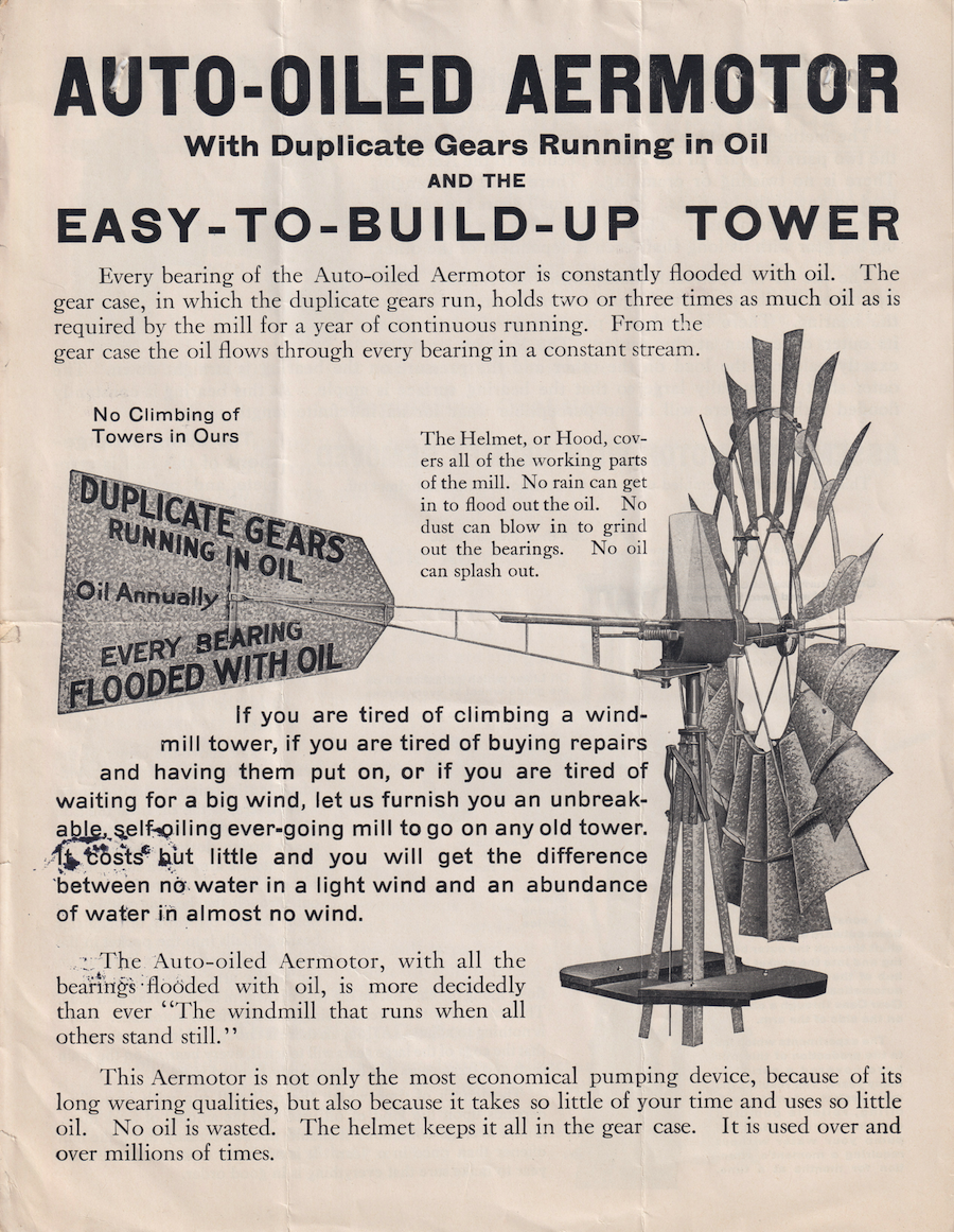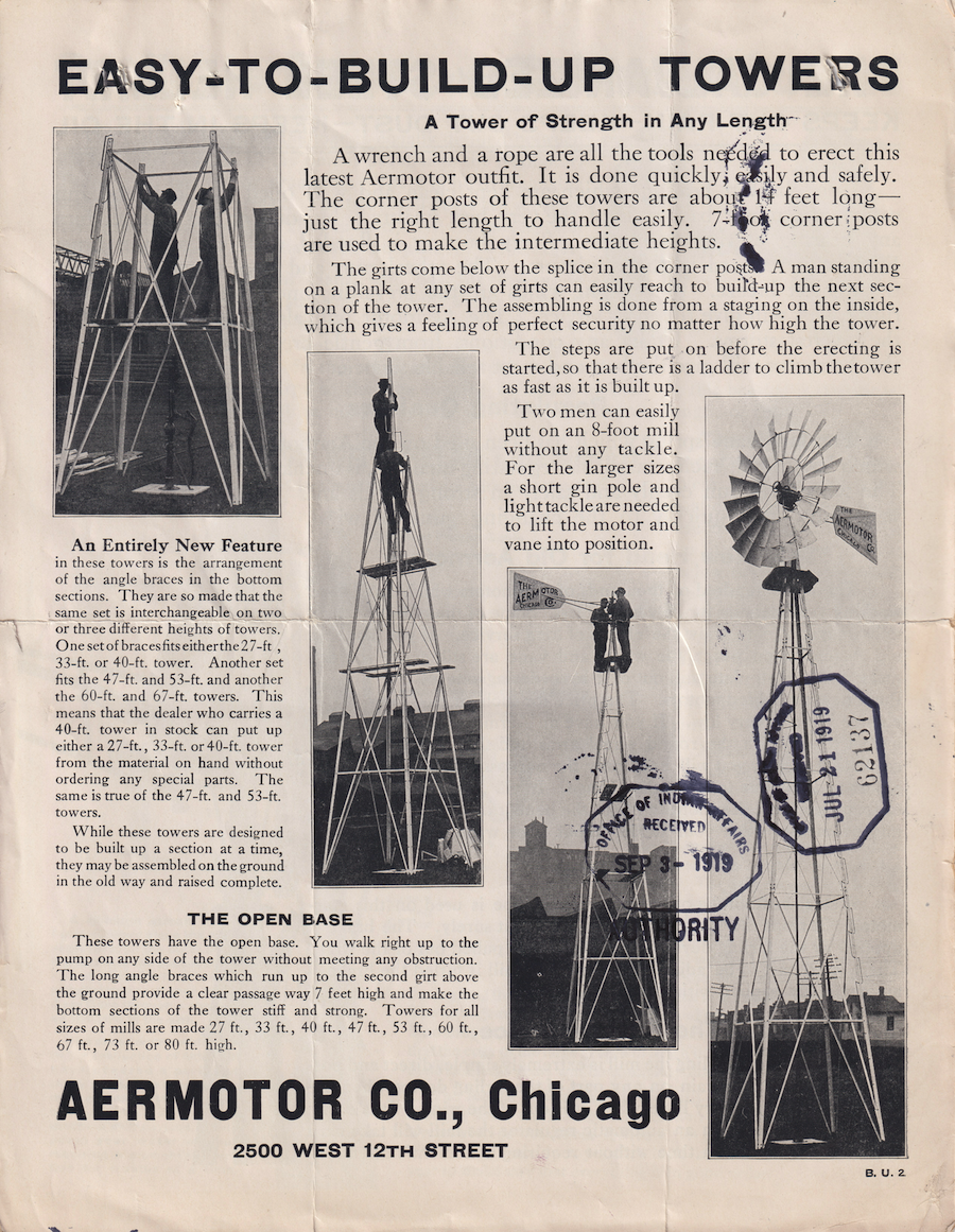 Advertisement from Aermotor Co., 21 July 1919; Folder: 83054-1917-424, Box 17; Central Classified Files, 1907–1939 (NAID 300324); Office of Indian Affairs; Record Group 75; National Archives and Records Administration-Washington, DC.