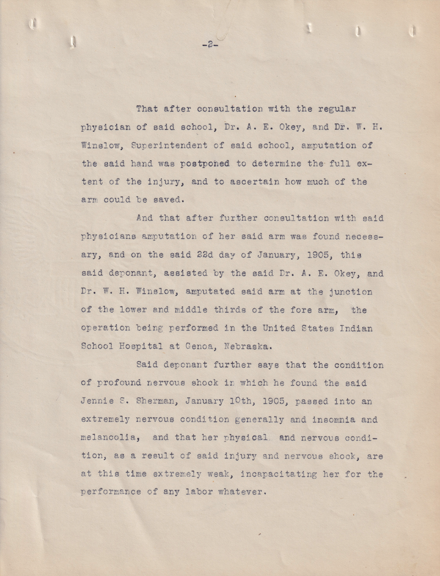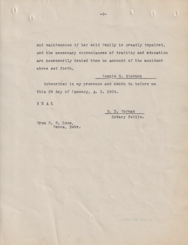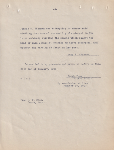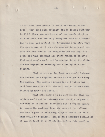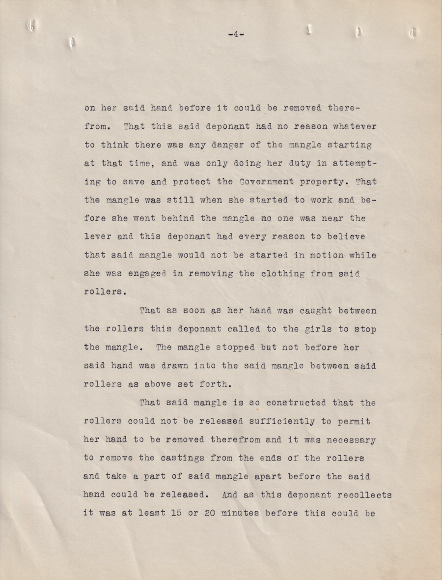 Regarding an accident in a laundry mangle causing Jennie S. Sherman's hand and wrist to sustain severe burns and injuries.Description: