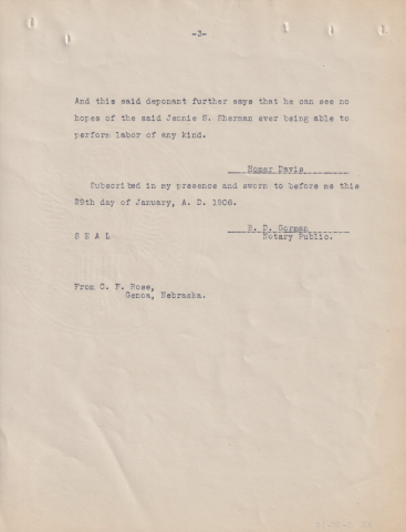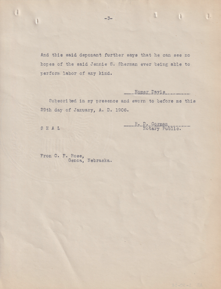 Affidavit of Jennie S. Sherman, Homer Davis, and Levi A. Crocker, undated