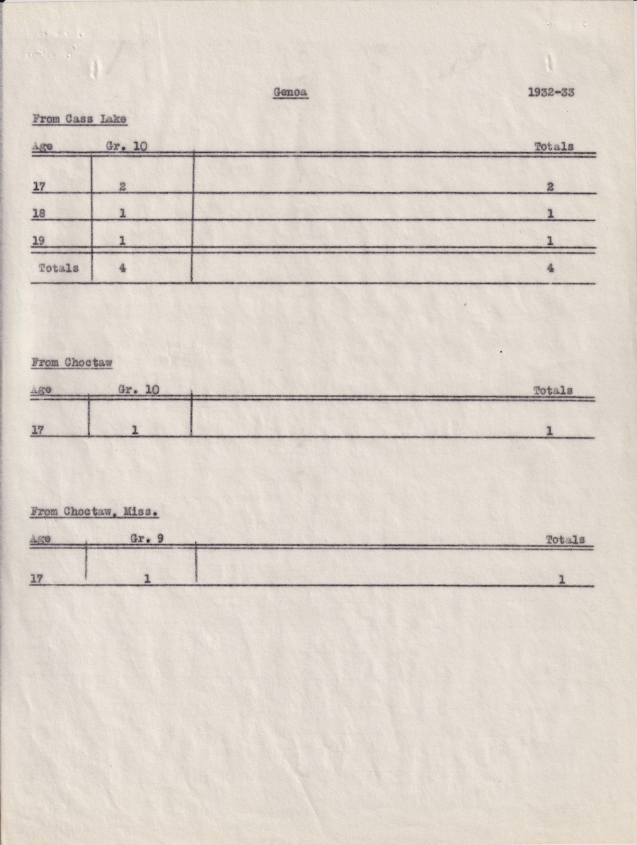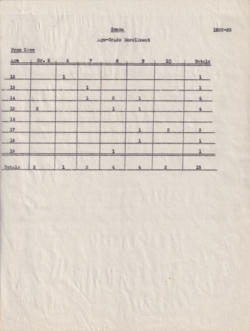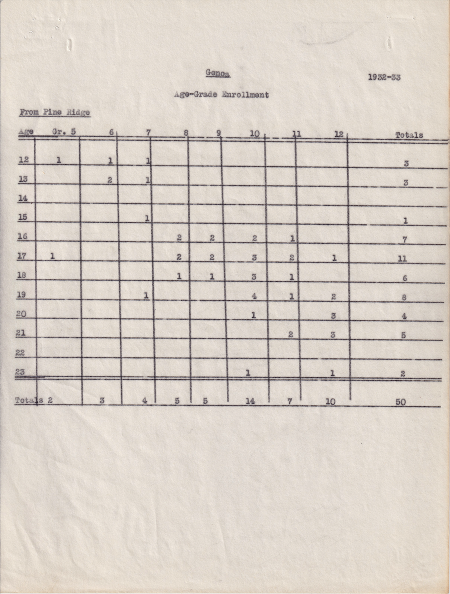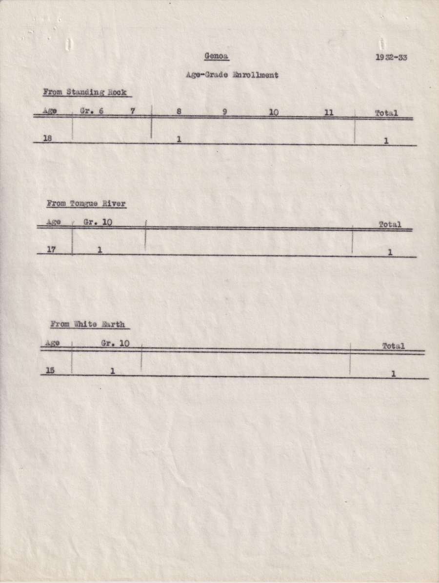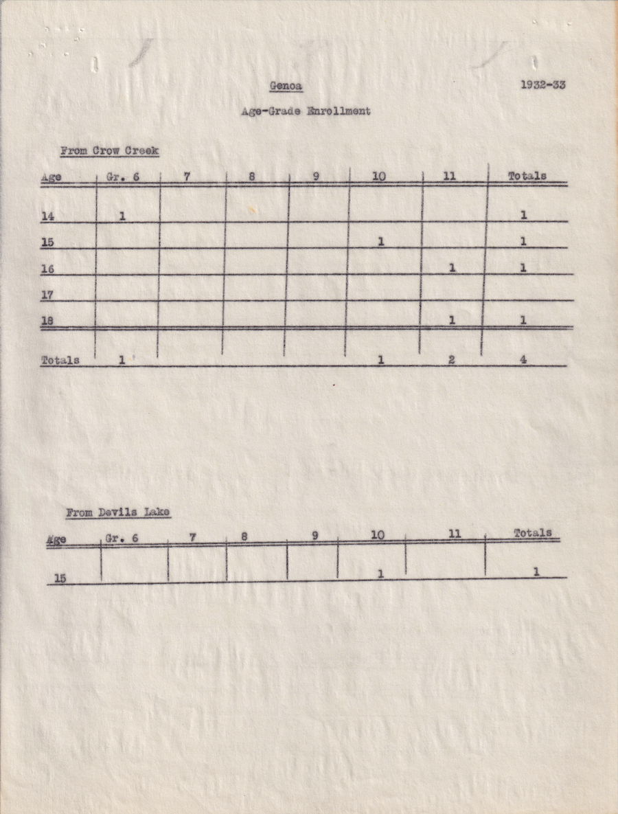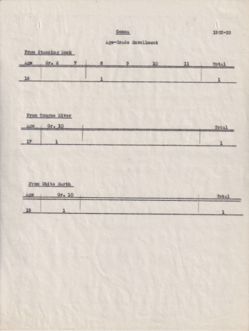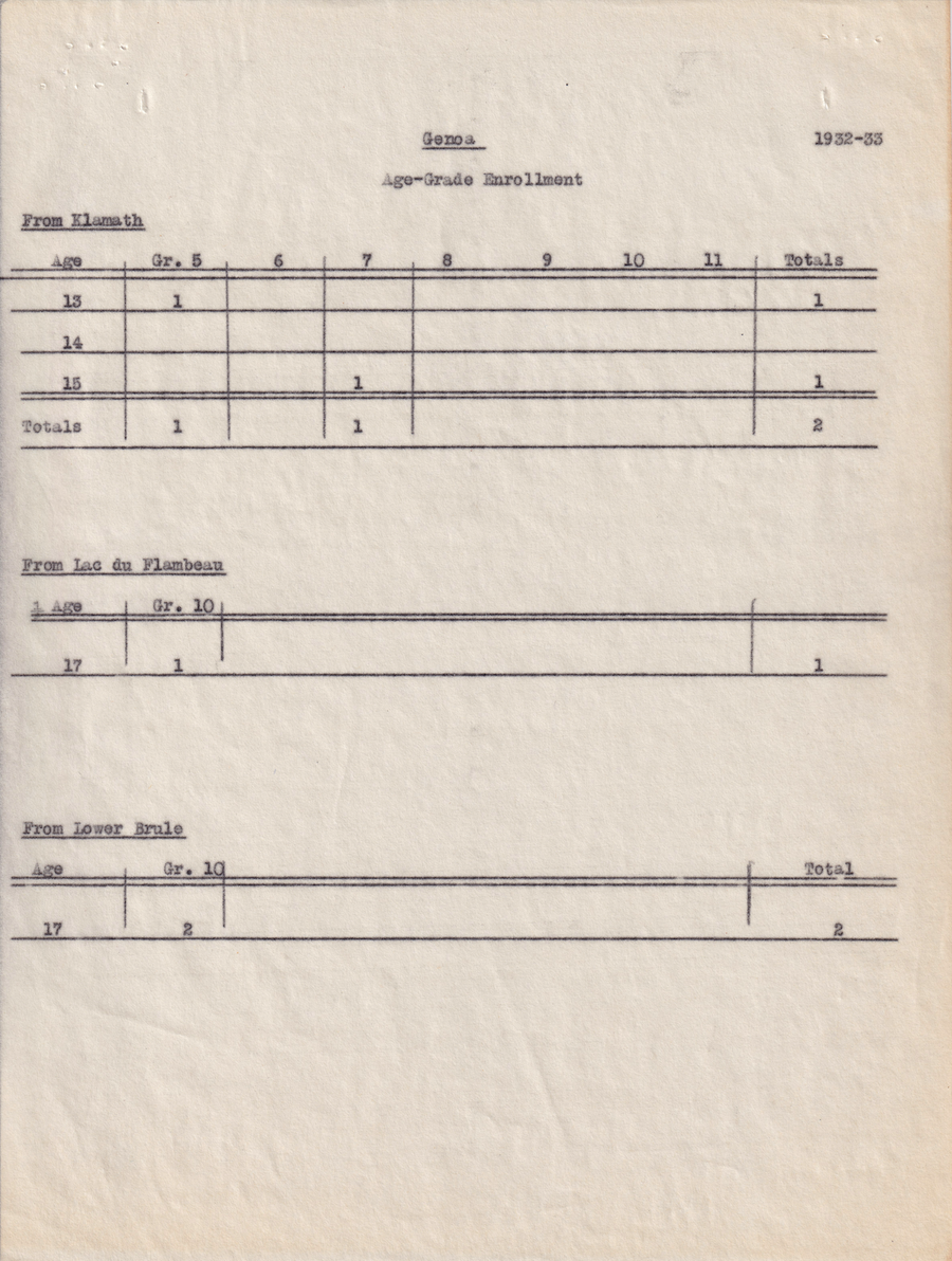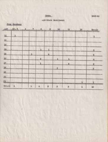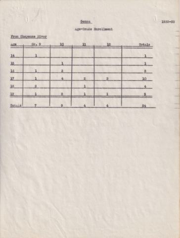 Enrollment Report, c. 1932-33; Folder: 45539-1930-800, Box 20; Central Classified Files, 1907–1939 (NAID 300324); Office of Indian Affairs; Record Group 75; National Archives and Records Administration-Washington, DC.Topic: