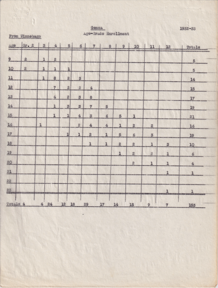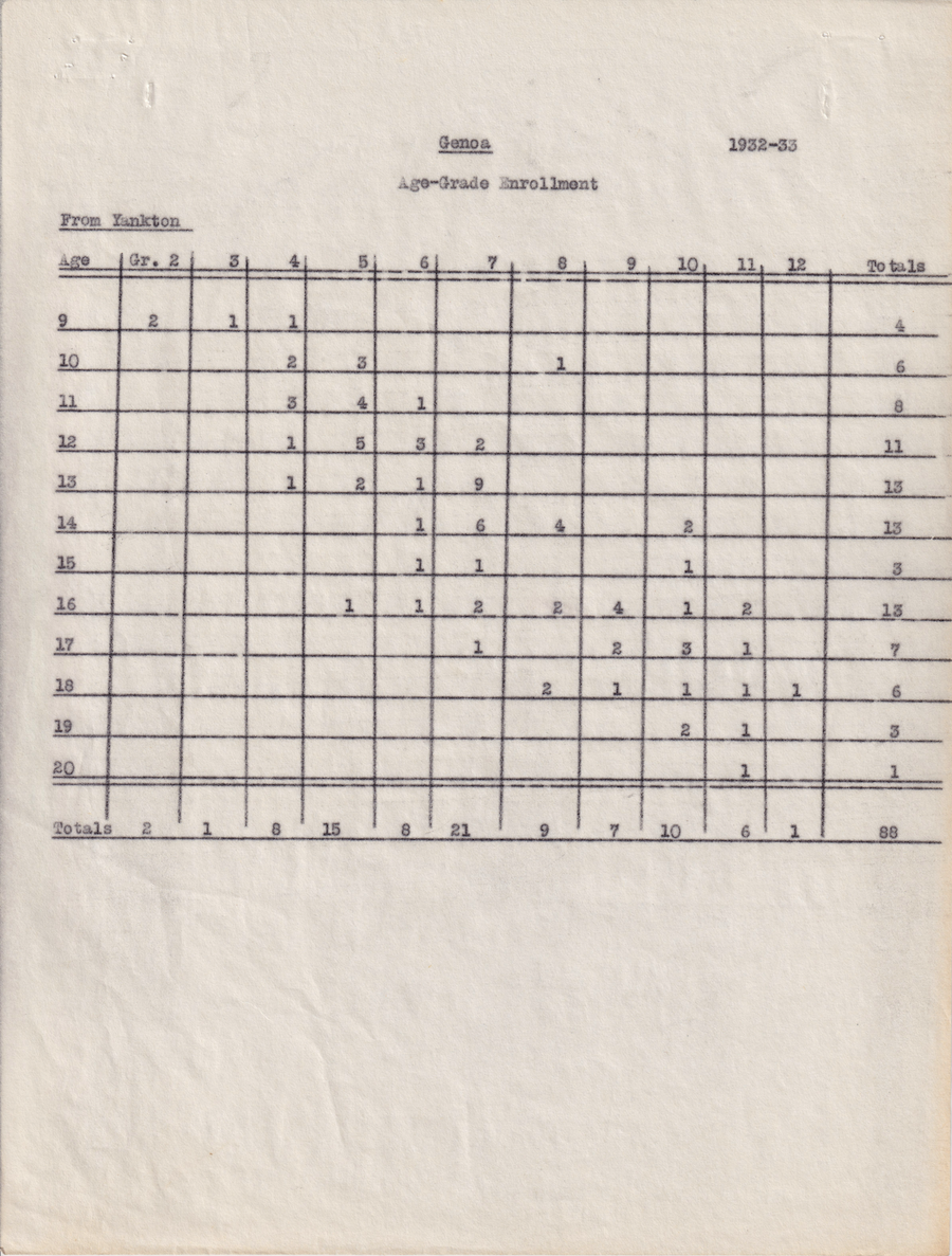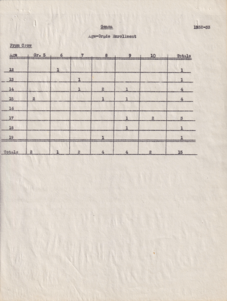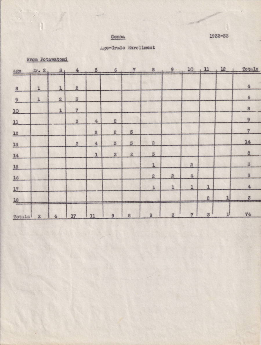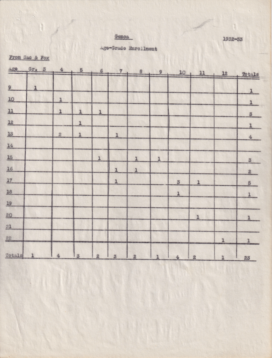 Enrollment Report, c. 1932-33; Folder: 45539-1930-800, Box 20; Central Classified Files, 1907–1939 (NAID 300324); Office of Indian Affairs; Record Group 75; National Archives and Records Administration-Washington, DC.Topic: