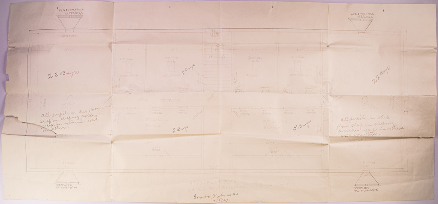 Floor plan of the attic in the large boys' building, 5 Dec. 1927; Folder: 50978-1927-410, Box 17; Central Classified Files, 1907–1939 (NAID 300324); Office of Indian Affairs; Record Group 75; National Archives and Records Administration-Washington, DC.