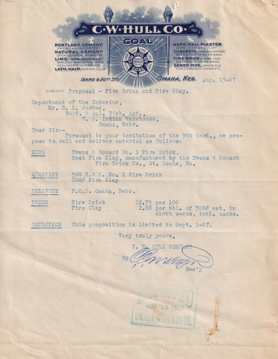 Regarding a proposal to sell and deliver fire brick and fire clay.Identifier: