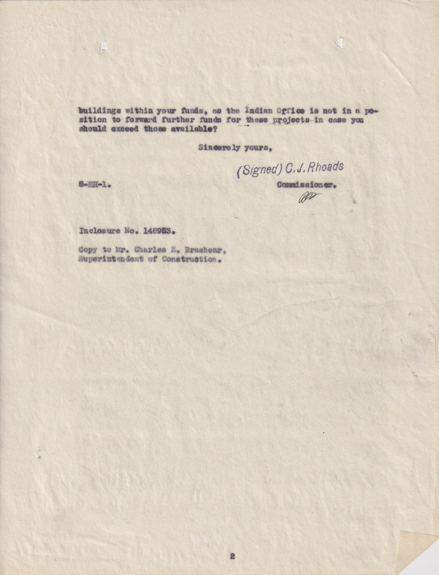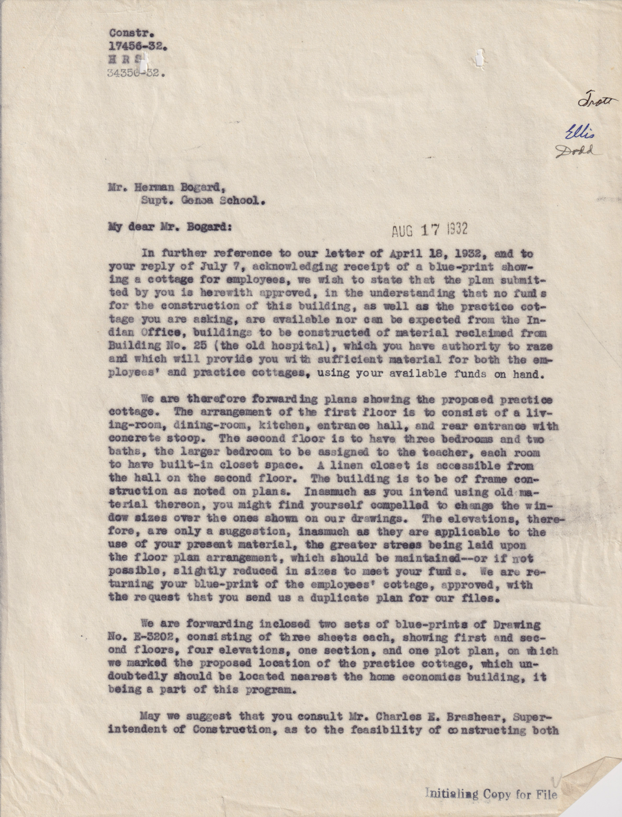Letter from C. J. Rhoads to Herman Bogard, 17 Aug 1932; Folder: 17456-1932-410, Box 17; Central Classified Files, 1907–1939 (NAID 300324); Office of Indian Affairs; Record Group 75; National Archives and Records Administration-Washington, DC.