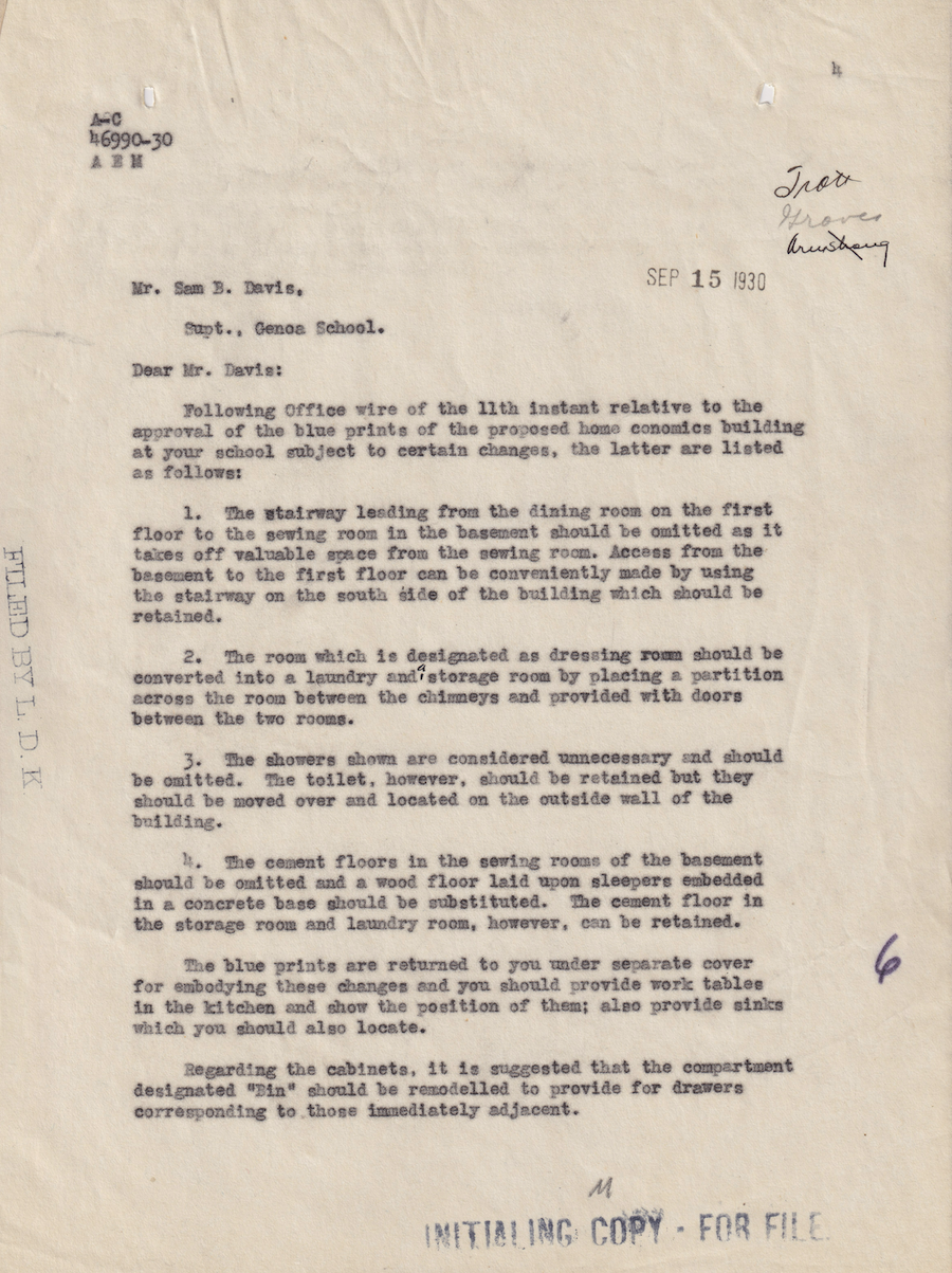 Regarding changes to the blueprints and bills of materials for construction of home economics building.Identifier: