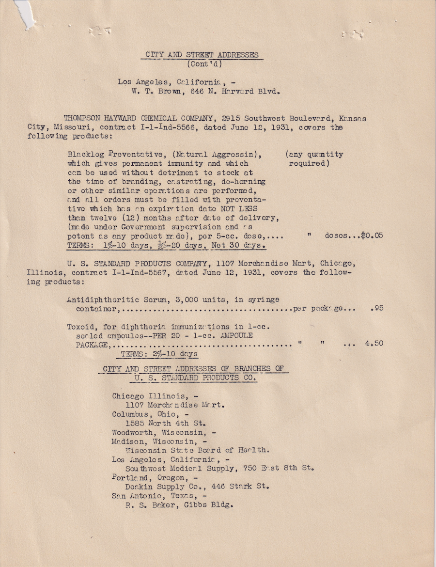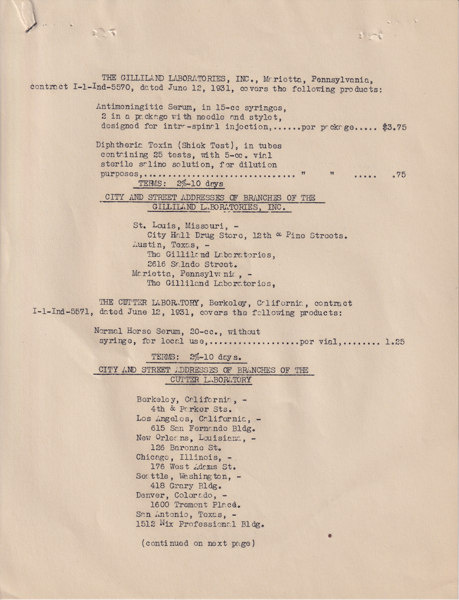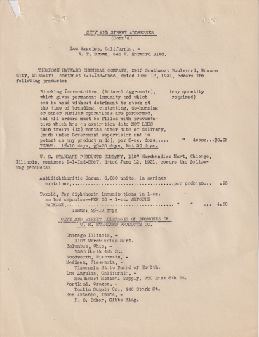 Regarding biological product, vaccines and immunizations, contractors listed by units, and locations of branches which have each product.Identifier: