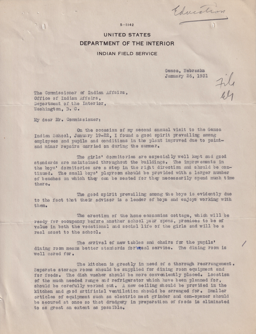 Letter from Carrie Alberta Lyford to Commissioner of Indian Affairs, 26 Jan. 1931; Folder; 6608-1931-806, Box 20; Central Classified Files, 1907–1939 (NAID 300324); Office of Indian Affairs; Record Group 75; National Archives and Records Administration-Washington, DC