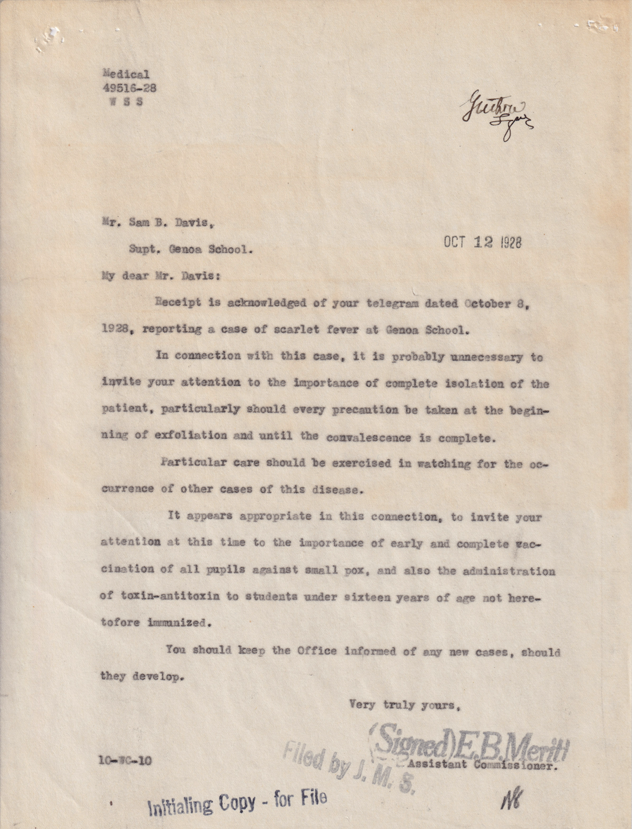 Regarding the treatment of a scarlet fever patient and vaccination of all pupils against smallpox.Identifier: