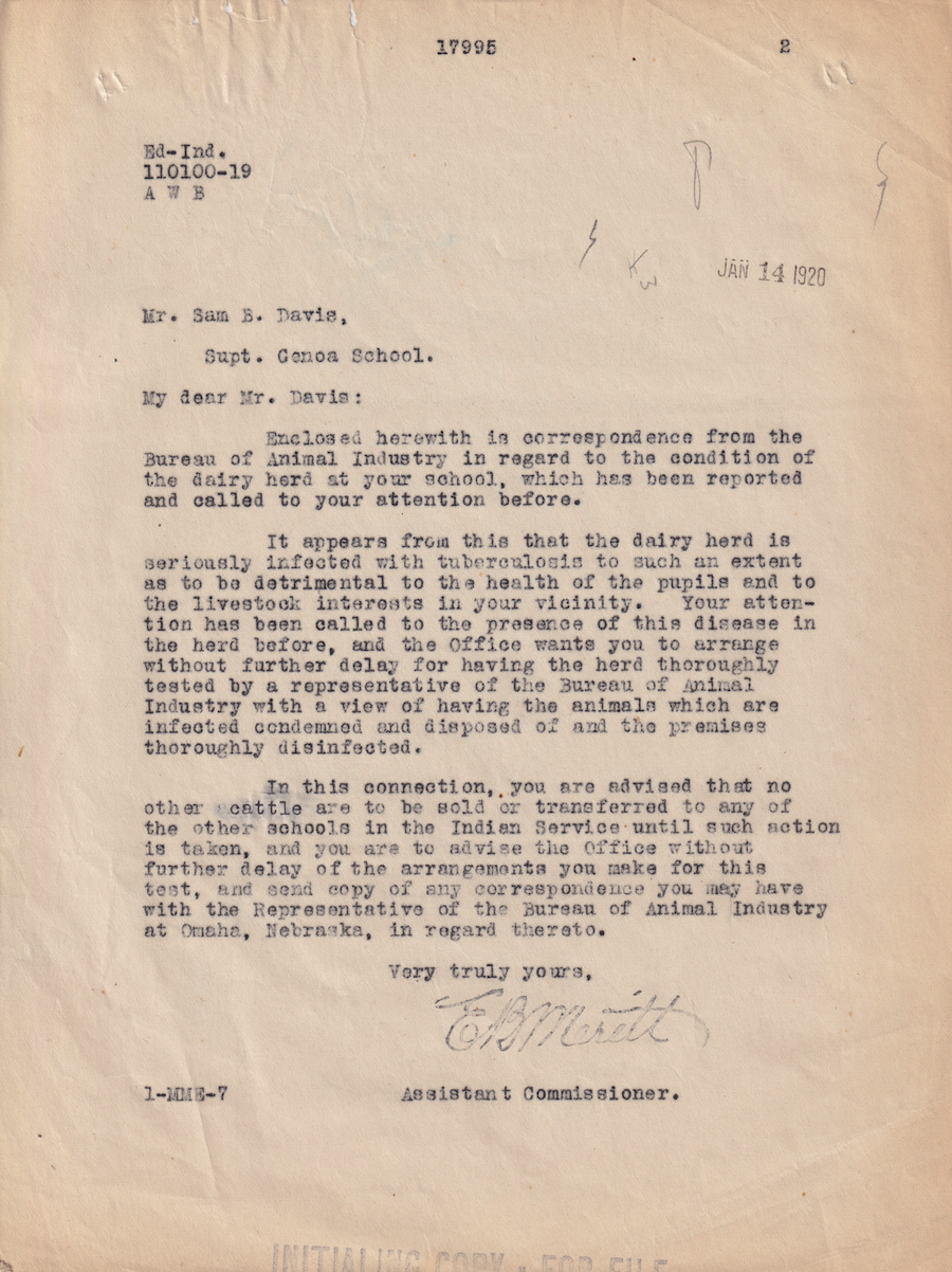 Letter from E. B. Meritt to Sam B. Davis, 14 Jan. 1920; Folder: 102442-1917-733, Box 19; Central Classified Files, 1907–1939 (NAID 300324); Office of Indian Affairs; Record Group 75; National Archives and Records Administration-Washington, DC.