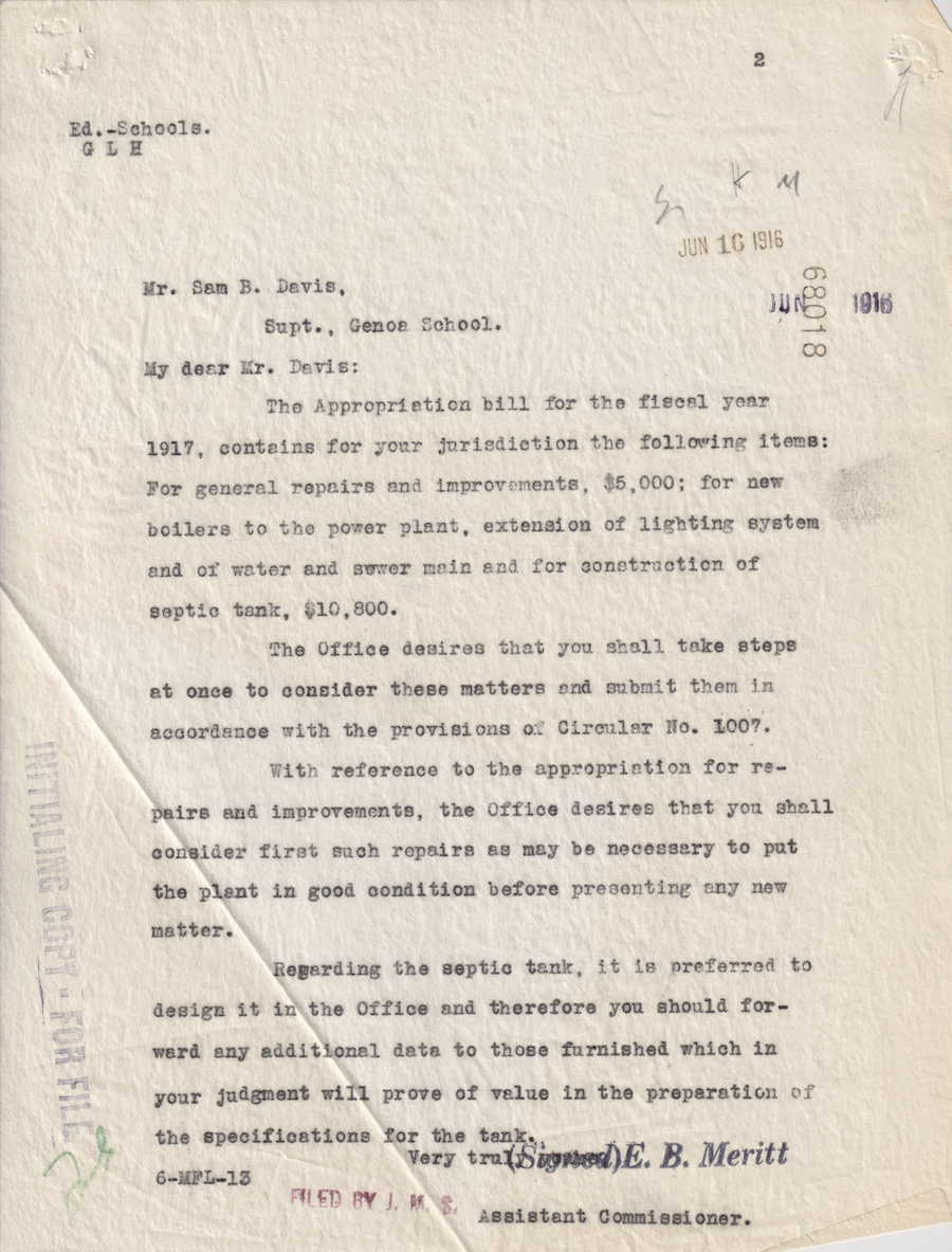 Letter from E. B. Meritt to Sam B. Davis, 16 June 1916; Folder: 68018-1916-420. Box 17; Central Classified Files, 1907–1939 (NAID 300324); Office of Indian Affairs; Record Group 75; National Archives and Records Administration-Washington, DC.