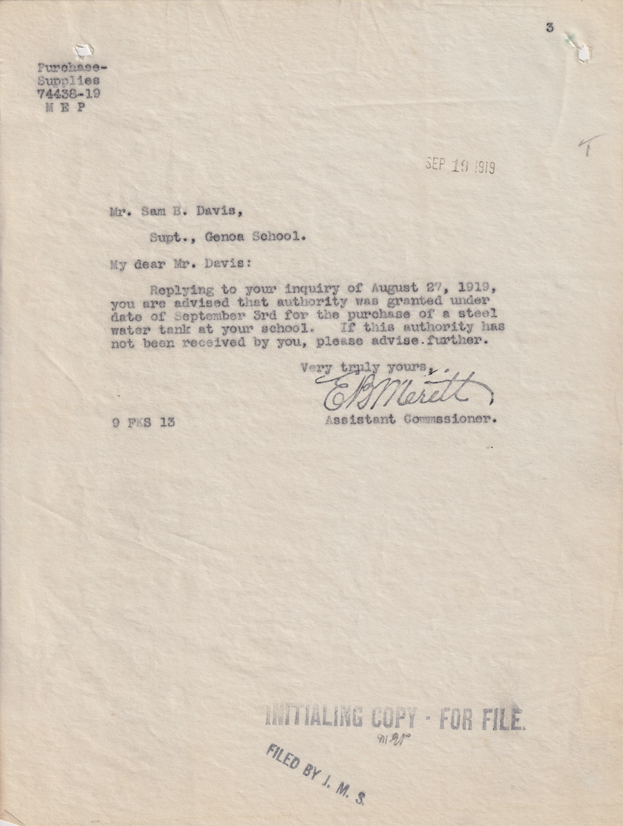 Letter from E. B. Meritt to Sam B. Davis, 19 Sept. 1919; Folder: 83054-1917-424, Box 17; Central Classified Files, 1907–1939 (NAID 300324); Office of Indian Affairs; Record Group 75; National Archives and Records Administration-Washington, DC.