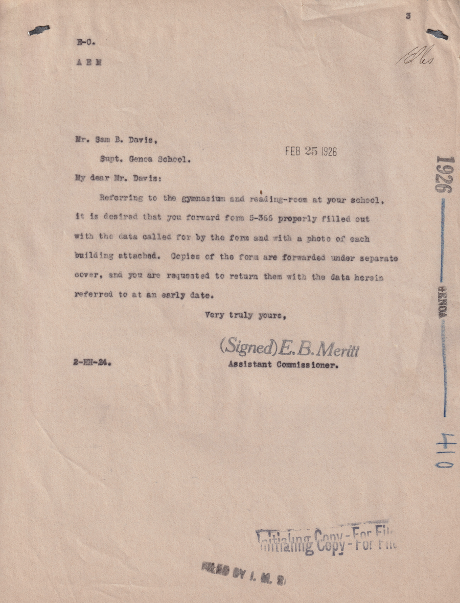 Letter from E. B. Meritt to Sam B. Davis, 25 Feb. 1926; Folder: 00-1926-410, Box 17; Central Classified Files, 1907–1939 (NAID 300324); Office of Indian Affairs; Record Group 75; National Archives and Records Administration-Washington, DC.