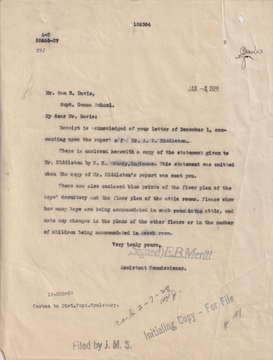 Letter from E. B. Meritt to Sam B. Davis, 4 Jan. 1928; Folder: 50978-1927-410, Box 17; Central Classified Files, 1907–1939 (NAID 300324); Office of Indian Affairs; Record Group 75; National Archives and Records Administration-Washington, DC.