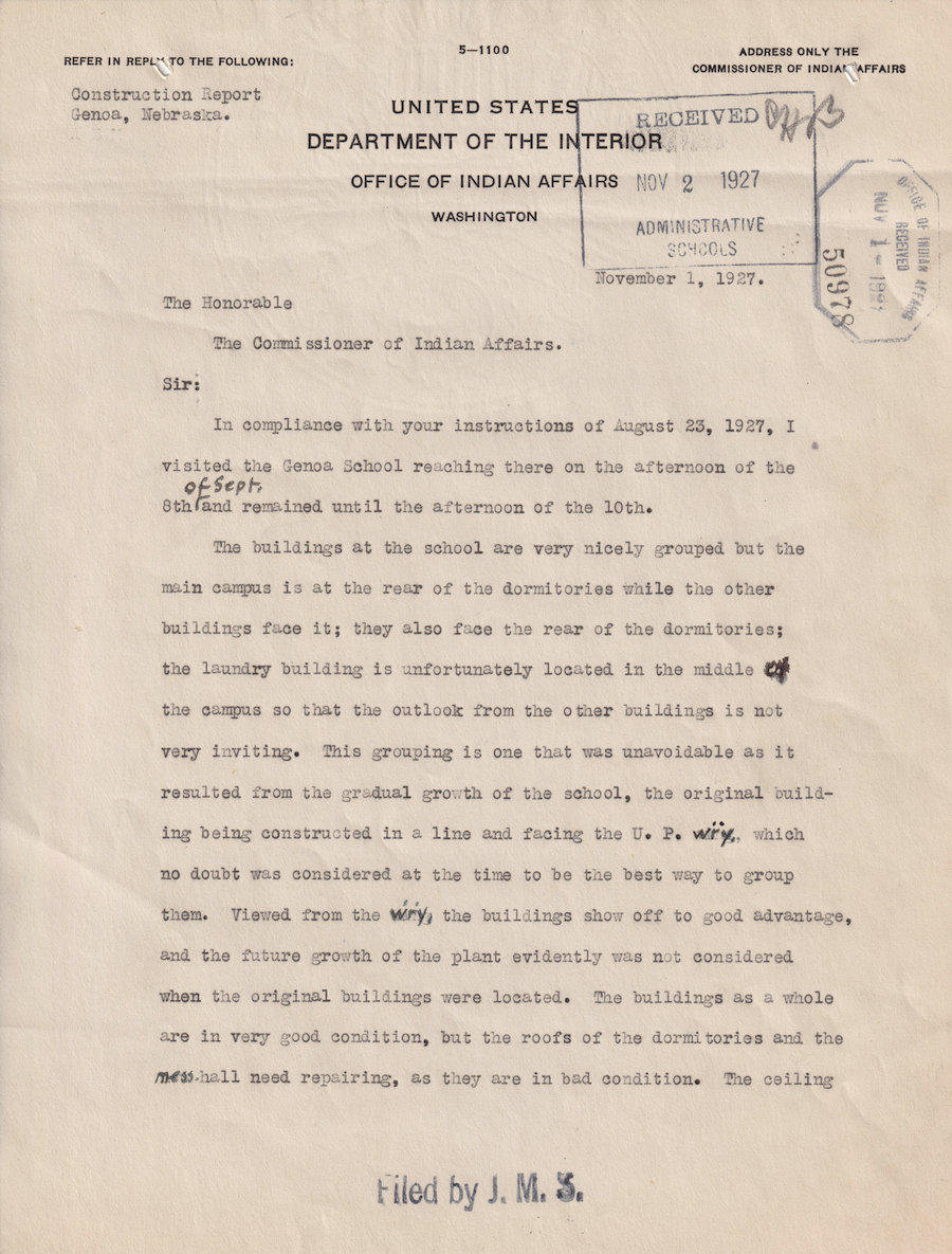 Letter from A. E. Middleton to the Commissioner of Indian Affairs, 1 Nov. 1927