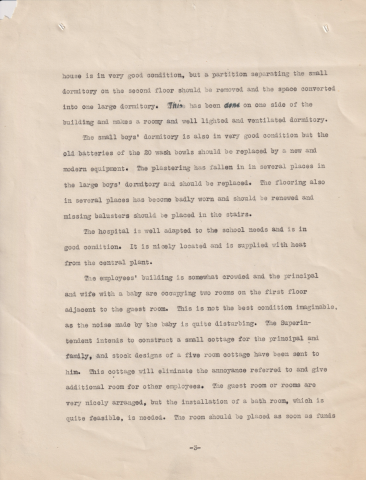 Regarding the description of the condition of the boys' dormitory, the girls' dormitory, hospital, the employees' building, heating and power plant, and the arrangement of the school campus.Identifier: