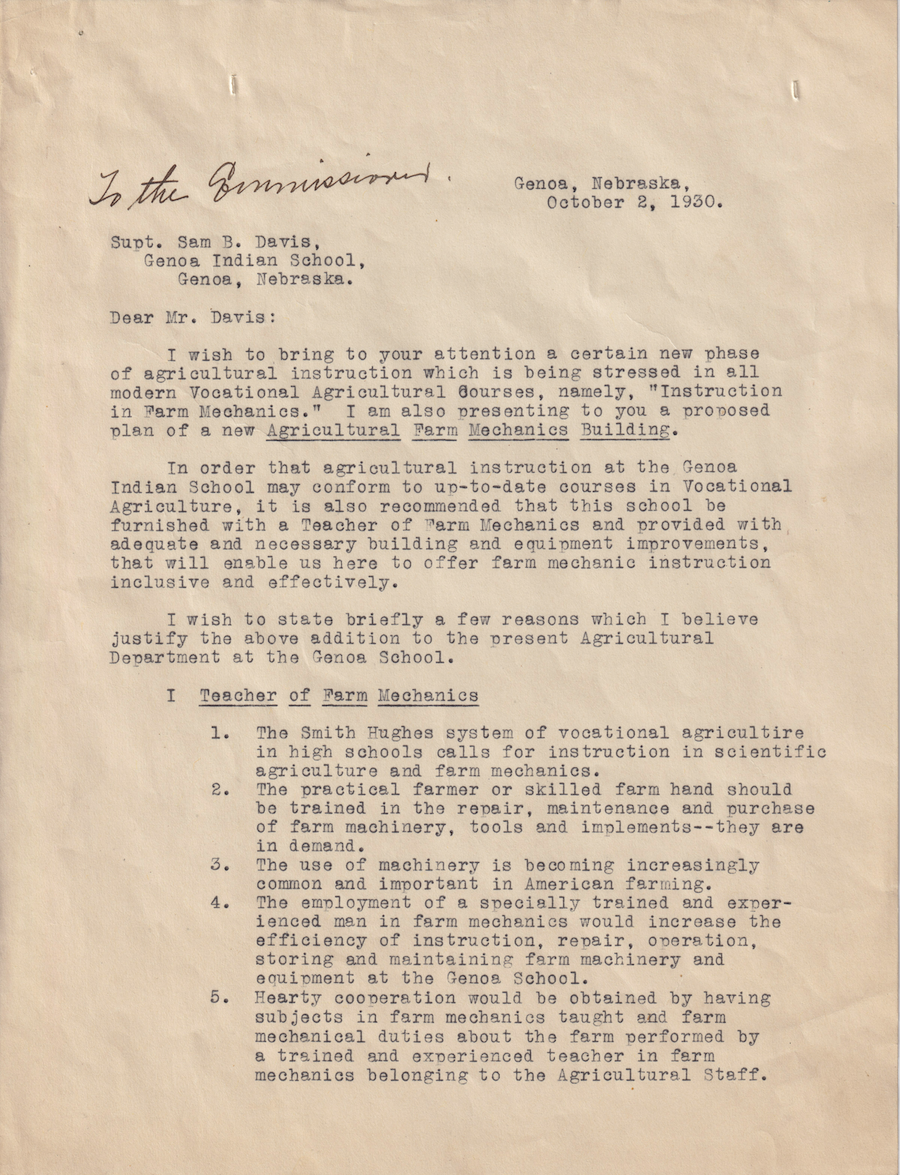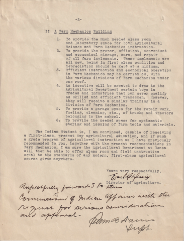 Regarding a proposed agricultural instruction plan with a teacher of farm mechanics and a farm mechanics building.Identifier: