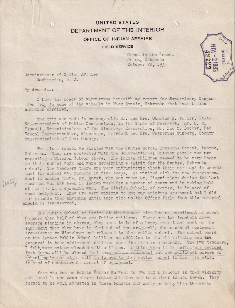 Letter from H. Bogard to Commissioner of Indian Affairs, 28 Oct. 1933; Folder: 45901-1933-803, Box 20; Central Classified Files, 1907–1939 (NAID 300324); Office of Indian Affairs; Record Group 75; National Archives and Records Administration-Washington, DC.