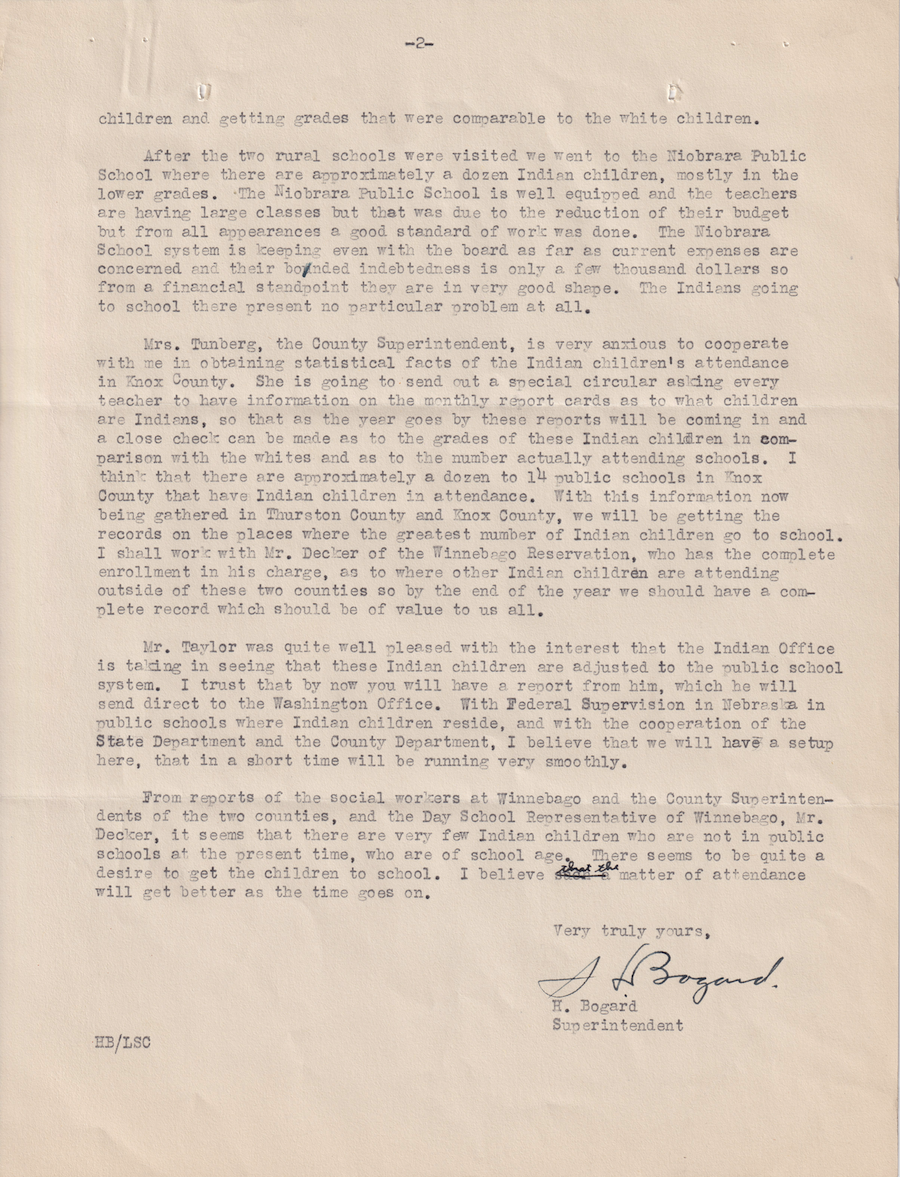 Letter from H. Bogard to Commissioner of Indian Affairs, 28 Oct. 1933