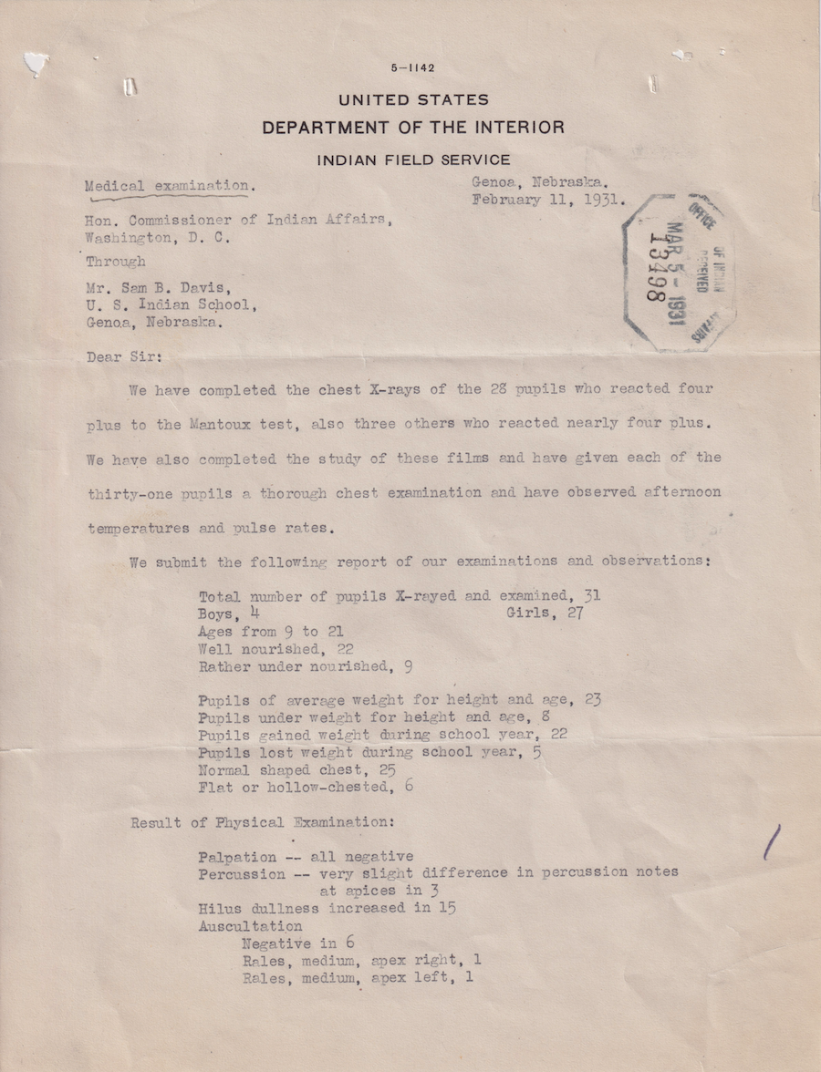 Letter from Homer Davis and unknown to Commissioner of Indian Affairs through Sam B. Davis, 11 Feb. 1931; Folder: 13498-1931-737, Box 20; Central Classified Files, 1907–1939 (NAID 300324); Office of Indian Affairs; Record Group 75; National Archives and Records Administration-Washington, DC.
