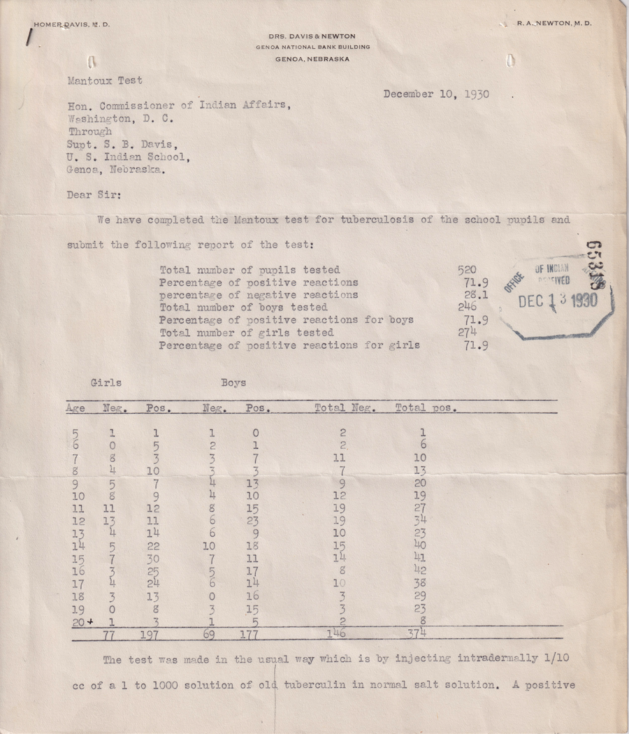 Letter from Homer Davis to S. B. Davis, 10 Dec. 1930; Folder: 65318-1930-737, Box 20; Central Classified Files, 1907–1939 (NAID 300324); Office of Indian Affairs; Record Group 75; National Archives and Records Administration-Washington, DC.