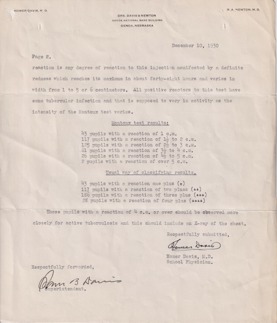 Regarding the results of a Mantoux test for tuberculosis of the school pupils.Description: