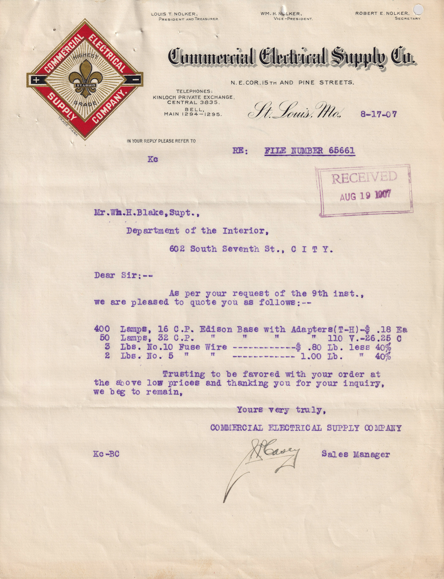 Regarding an itemized quote for lamps and fuse wire.Identifier: