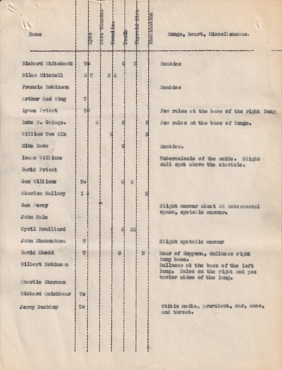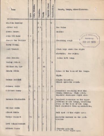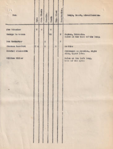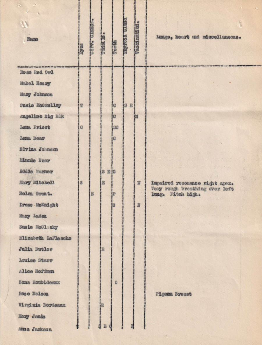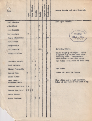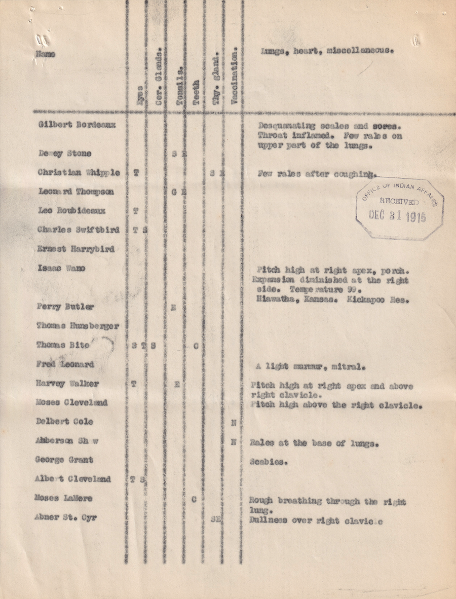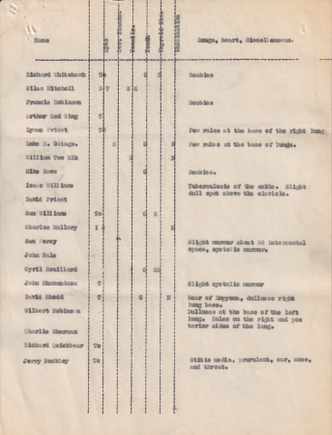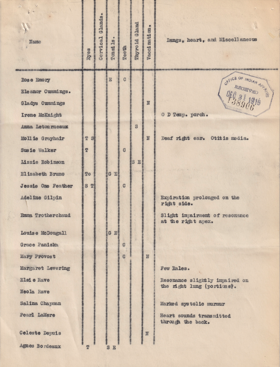Regarding physical examinations of the pupils' eyes, cervical glands, teeth tonsils, thyroids, and vaccinations.Description: