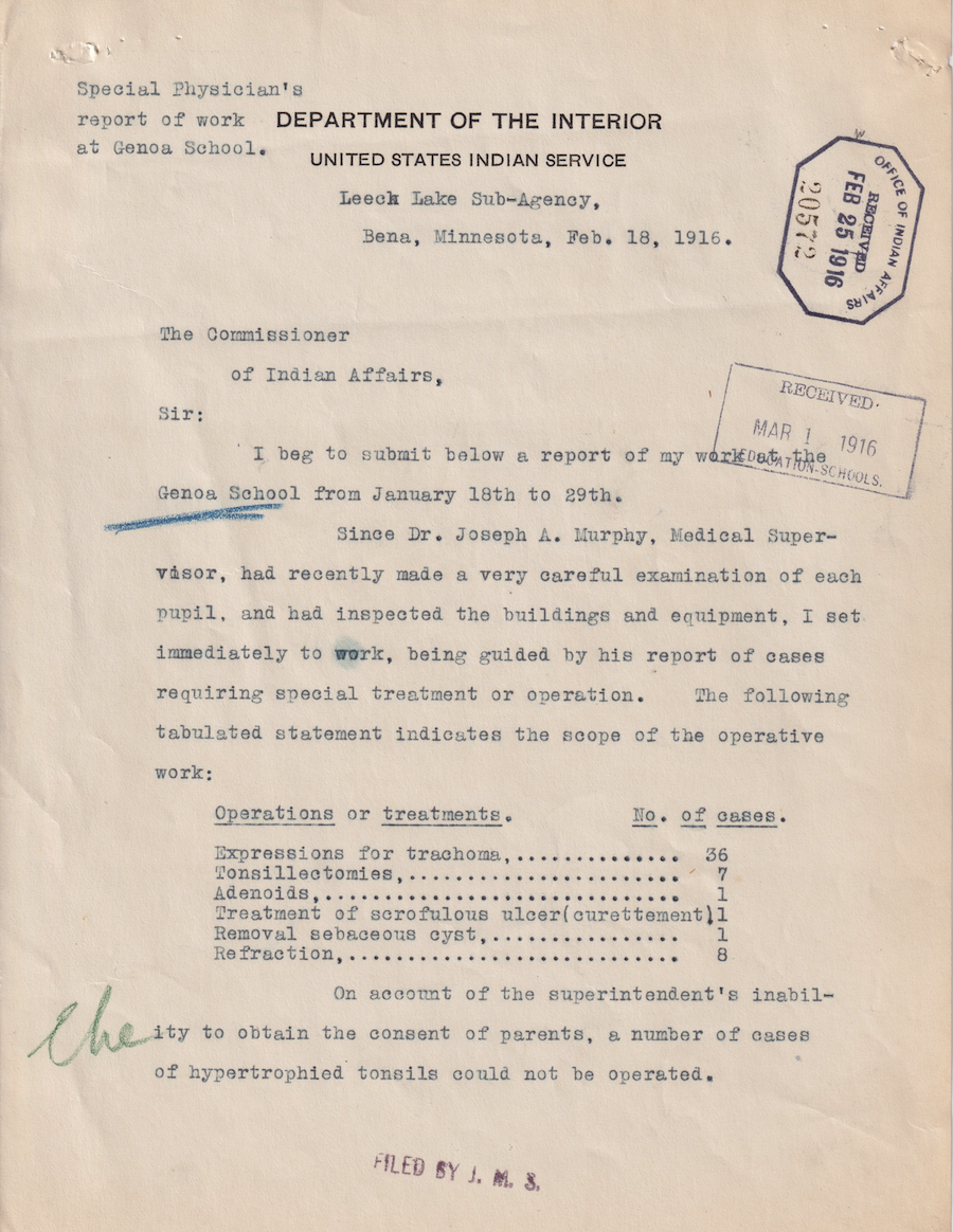 Letter from Otis O. Benson to Commissioner of Indian Affairs, 18 Feb. 1916; Folder: 20572-1916-734, Box 20; Central Classified Files, 1907–1939 (NAID 300324); Office of Indian Affairs; Record Group 75; National Archives and Records Administration-Washington, DC.