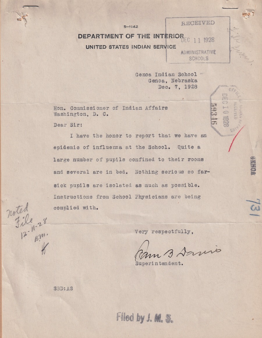Letter from Sam B. Davis, 7 Dec. 1928; Folder: 59346-1928-731, Box 19; Central Classified Files, 1907–1939 (NAID 300324); Office of Indian Affairs; Record Group 75; National Archives and Records Administration-Washington, DC.