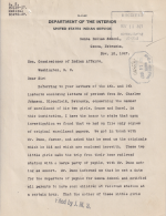 Letter from Sam B. Davis to Commissioner of Indian Affairs, 10 Nov. 1927; Folder: 50475-1927-734, Box 20; Central Classified Files, 1907–1939 (NAID 300324); Office of Indian Affairs; Record Group 75; National Archives and Records Administration-Washington, DC.