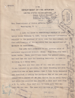 Letter from Sam B. Davis to the Commissioner of Indian Affairs, 14 Feb. 1921; Folder: 102442-1917-733, Box 19; Central Classified Files, 1907–1939 (NAID 300324); Office of Indian Affairs; Record Group 75; National Archives and Records Administration-Washington, DC.Original Date: