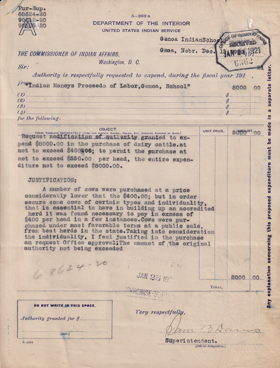 Letter from Sam B. Davis to the Commissioner of Indian Affairs, 15 Dec. 1920, 15 Dec. 1920; Folder: 102442-1917-733, Box 19; Central Classified Files, 1907–1939 (NAID 300324); Office of Indian Affairs; Record Group 75; National Archives and Records Administration-Washington, DC.
