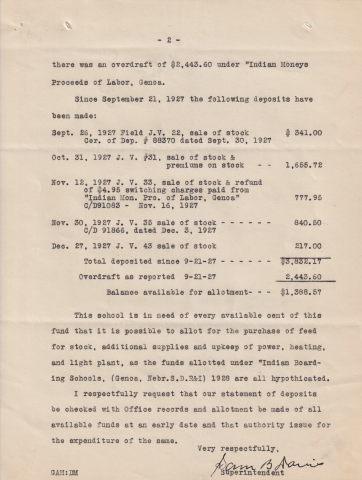 Letter from Sam B. Davis to the Commissioner of Indian Affairs, 16 Jan. 1928; Folder: 51800-1927-410, Box 17; Central Classified Files, 1907–1939 (NAID 300324); Office of Indian Affairs; Record Group 75; National Archives and Records Administration-Washington, DC.