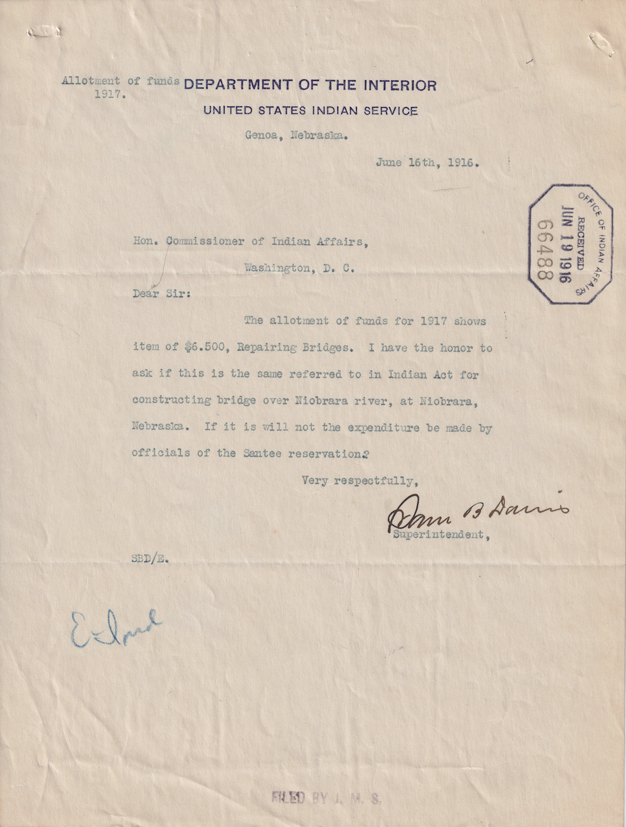 Regarding the allotment of $6,500 for repairing bridges going to the Santee Reservation.