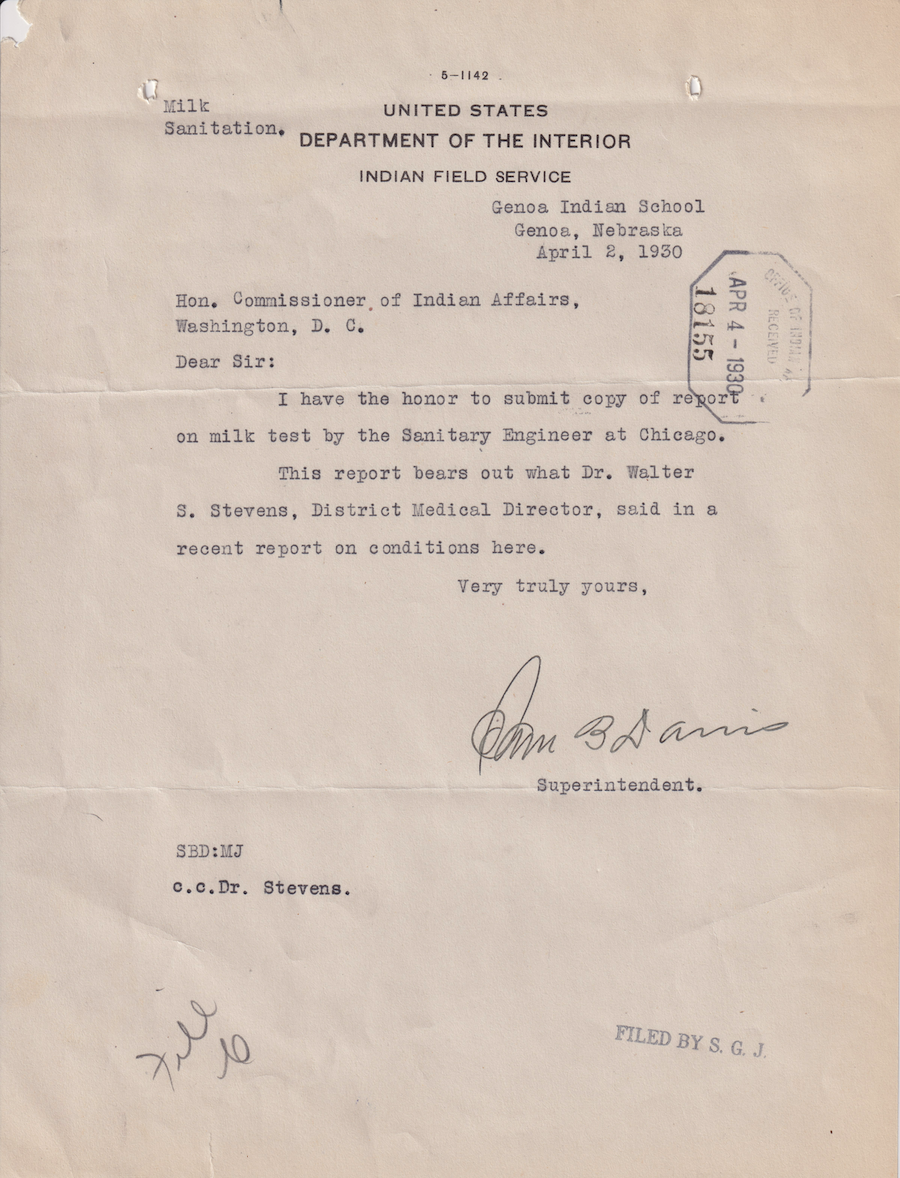 Letter from Sam B. Davis to the Commissioner of Indian Affairs, 2 Apr. 1930