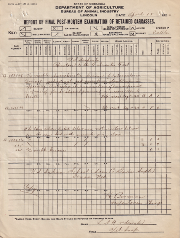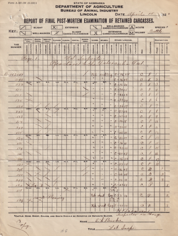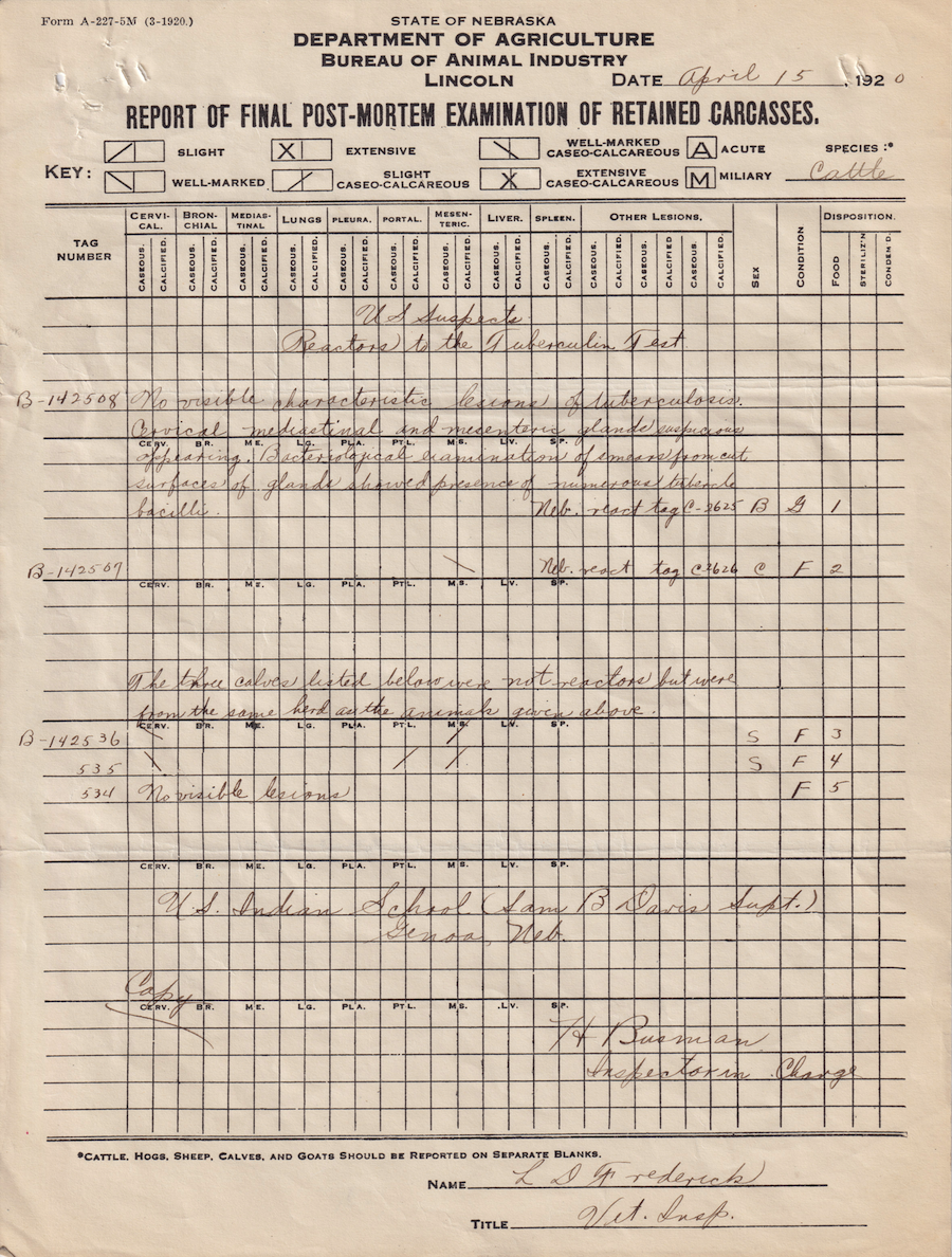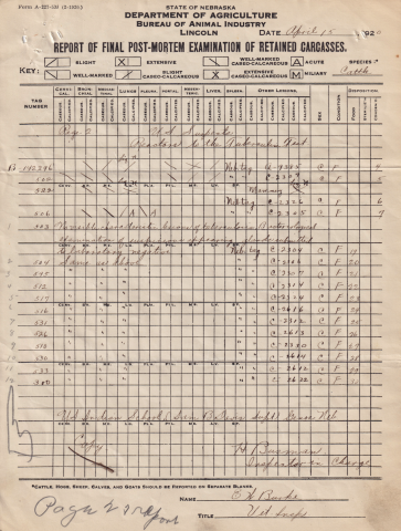 This letter contains an attached post-mortem examination of the cattle carcasses.