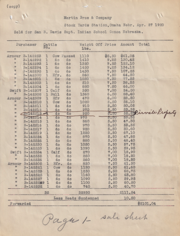 Letter from Sam B. Davis to the Commissioner of Indian Affairs, 24 June 1920; Folder: 102442-1917-733, Box 19; Central Classified Files, 1907–1939 (NAID 300324); Office of Indian Affairs; Record Group 75; National Archives and Records Administration-Washington, DC.
