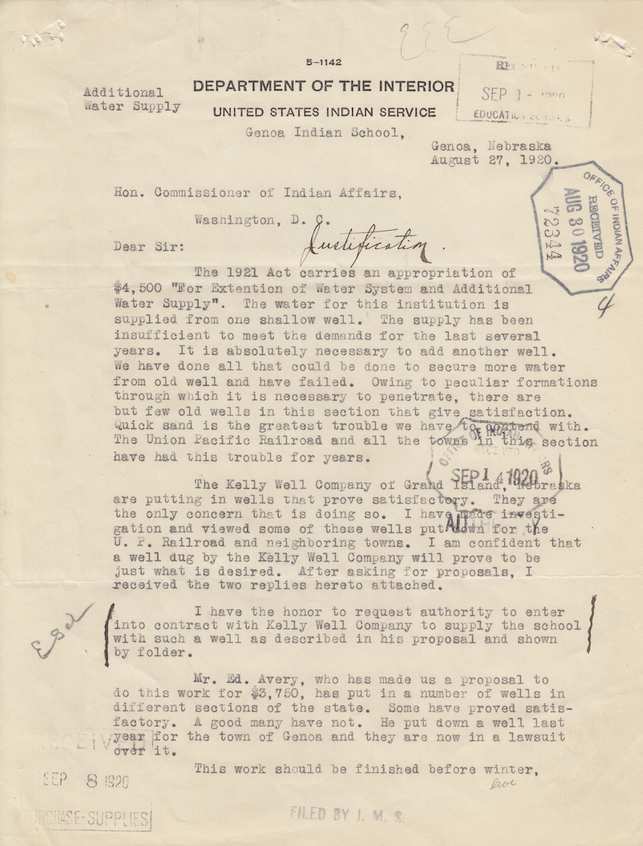 Letter from Sam B. Davis to the Commissioner of Indian Affairs, 27 Aug. 1920