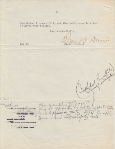 Letter from Sam B. Davis to the Commissioner of Indian Affairs, 27 Aug. 1920; Folder: 72344-1920-424
