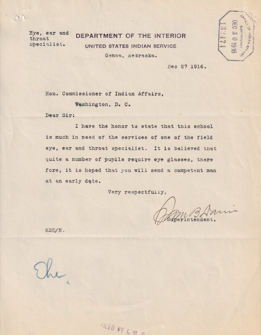 Letter from Sam B. Davis to Commissioner of Indian Affairs, 27 Dec. 1916; Folder: 132474-1916-734, Box 20; Central Classified Files, 1907–1939 (NAID 300324); Office of Indian Affairs; Record Group 75; National Archives and Records Administration-Washington, DC.