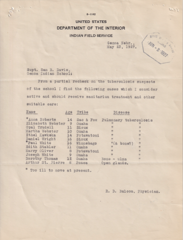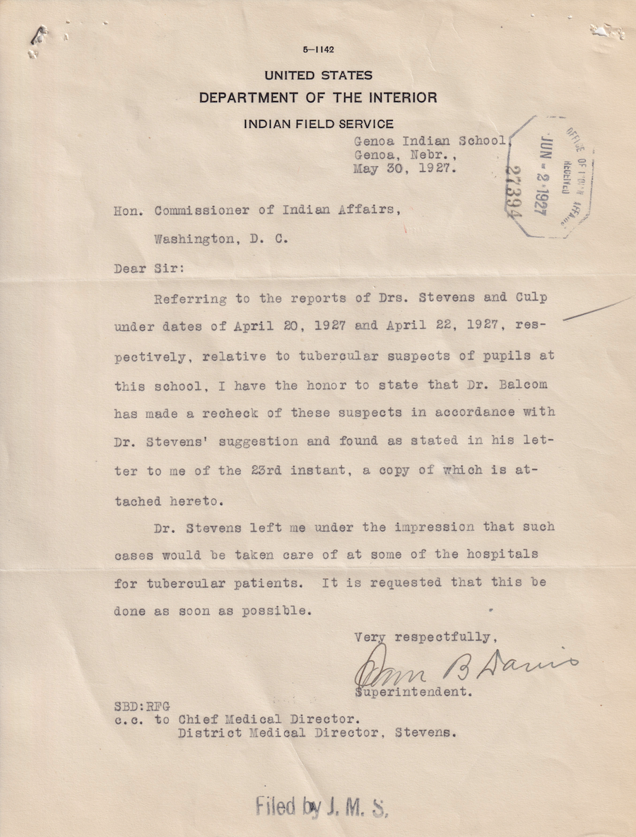 Letter from Sam B. Davis to the Commissioner of Indian Affairs, 30 May 1927; Folder: 27394-1927-732, Box 19; Central Classified Files, 1907–1939 (NAID 300324); Office of Indian Affairs; Record Group 75; National Archives and Records Administration-Washington, DC.