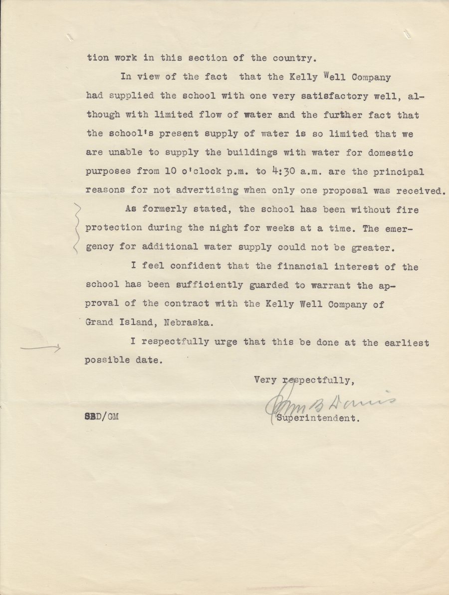 Regarding the request for approval to contract the Kelly Well Company for construction of a well.Description: