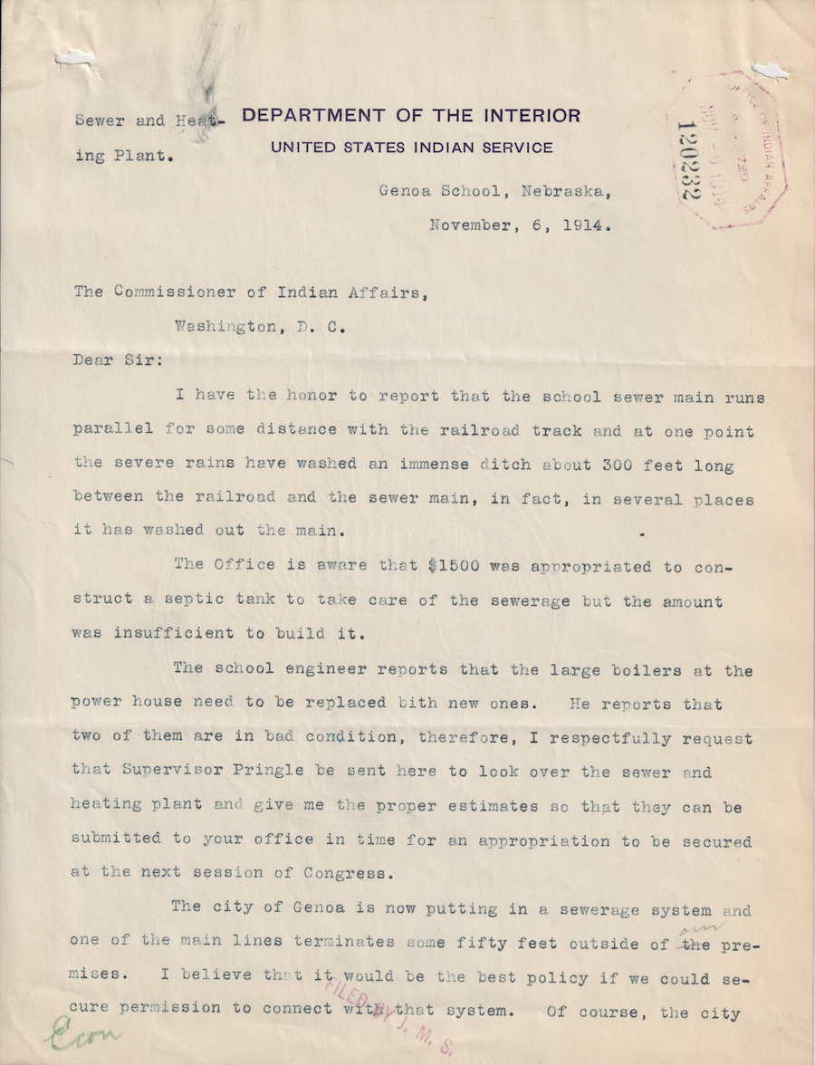 Letter from Sam B. Davis to the Commissioner of Indian Affairs, 6 Nov. 1914; Folder: 120232-1914-420, Box 17; Central Classified Files, 1907–1939 (NAID 300324); Office of Indian Affairs; Record Group 75; National Archives and Records Administration-Washington, DC.