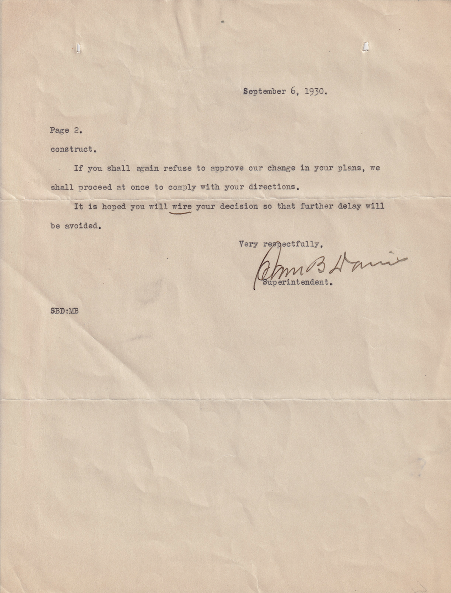 Letter from Sam B. Davis to the Commissioner of Indian Affairs, 6 Sept. 1930; Folder: 28051-1930-410, Box 17; Central Classified Files, 1907–1939 (NAID 300324); Office of Indian Affairs; Record Group 75; National Archives and Records Administration-Washington, DC.