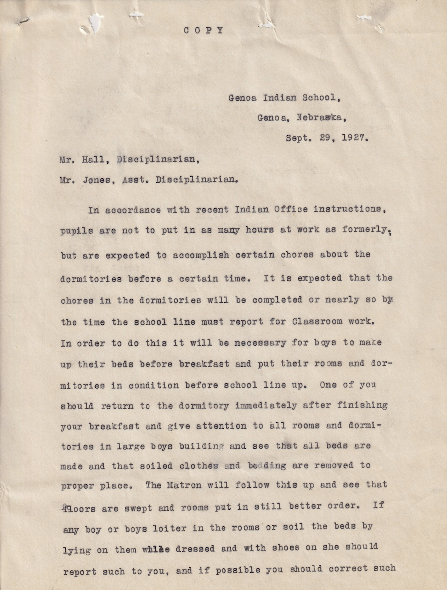 Letter from Sam B. Davis to Mr. Hall and Mr. Jones, 29 Sept. 1927; Folder: 51800-1927-410, Box 17; Central Classified Files, 1907–1939 (NAID 300324); Office of Indian Affairs; Record Group 75; National Archives and Records Administration-Washington, DC.