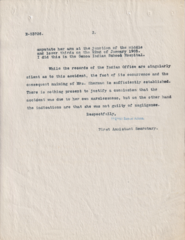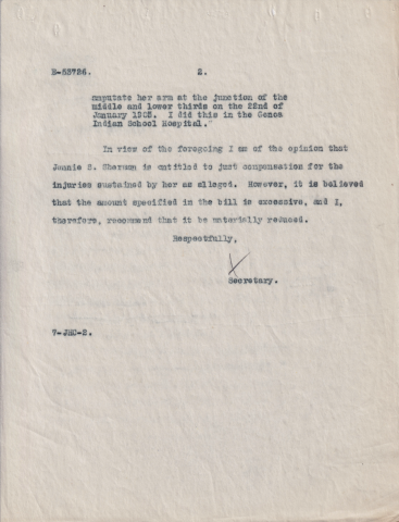 Regarding compensation for Jennie S. Sherman's condition after an accident in the laundry mangle.Identifier: