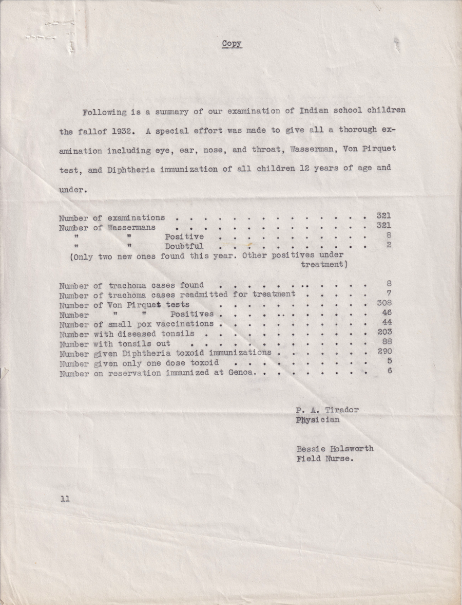 Regarding statement of results of examination of Indian school children for venereal disease on Omaha and Winnebago reservations. Identifier: