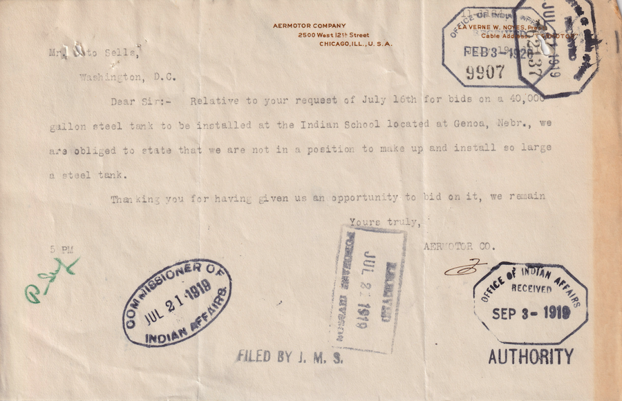 Letter from unknown to Cato Sells, 19 July 1919; Folder: 83054-1917-424, Box 17; Central Classified Files, 1907–1939 (NAID 300324); Office of Indian Affairs; Record Group 75; National Archives and Records Administration-Washington, DC.