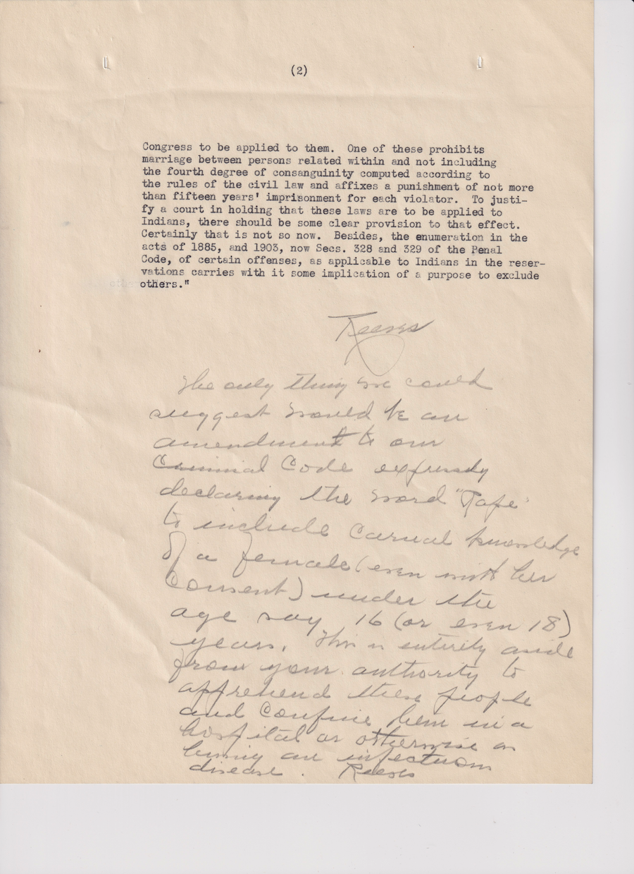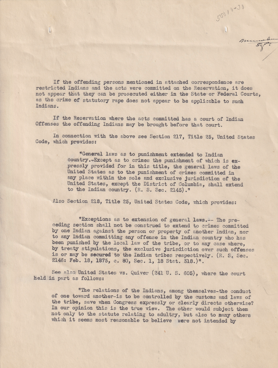 Letter from unknown, undated; Folder: 50010-1930-732, Box 19; Central Classified Files, 1907–1939 (NAID 300324); Office of Indian Affairs; Record Group 75; National Archives and Records Administration-Washington, DC.