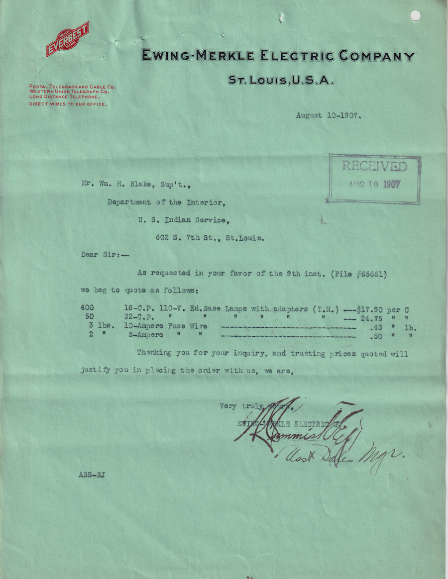Letter from unknown to Wm. H. Blake, 10 Aug. 1907; Folder: 73700-1907-420; Central Classified Files, 1907–1939 (NAID 300324); Office of Indian Affairs; Record Group 75; National Archives and Records Administration-Washington, DC.
